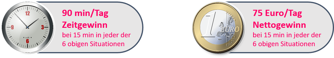 Der Mindest-Spareffekt an Zeit und Kosten pro Anwender für alle sechs obigen Situationen