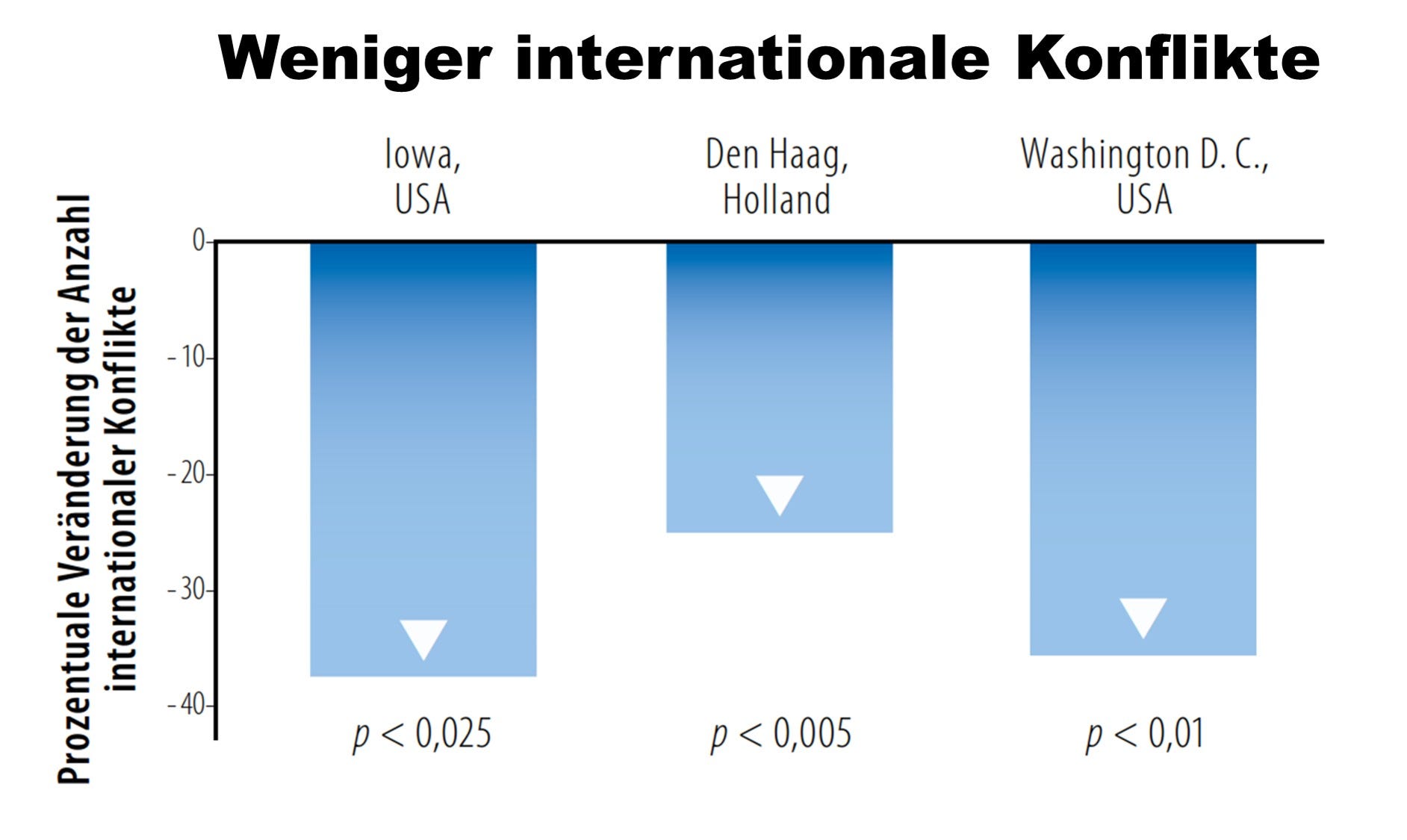 Während des Einsatzes der Friedensformel in drei verschiedenen Studien konnte weltweit ein Rückgang von internationalen Konflikten um durchschnittlich 72 % beobachtet werden.